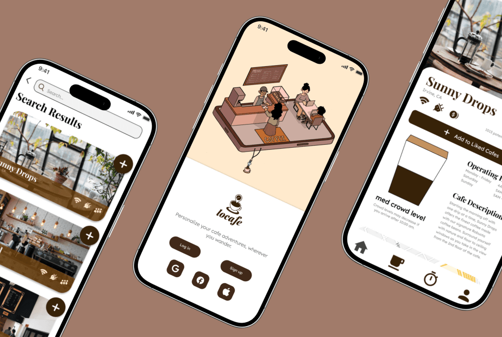 From college students to cafe enthusiasts, many face challenges in finding suitable coffee shops for productive work sessions. My team shared a common love for working at cafes, but also a common struggle to find new cafes that match our preferences—from suitable noise levels to specific ambiences. We also recalled how many of our peers share the same frustrations of driving 15+ minutes to find a cafe, just to leave due to a lack of seating or outlets.